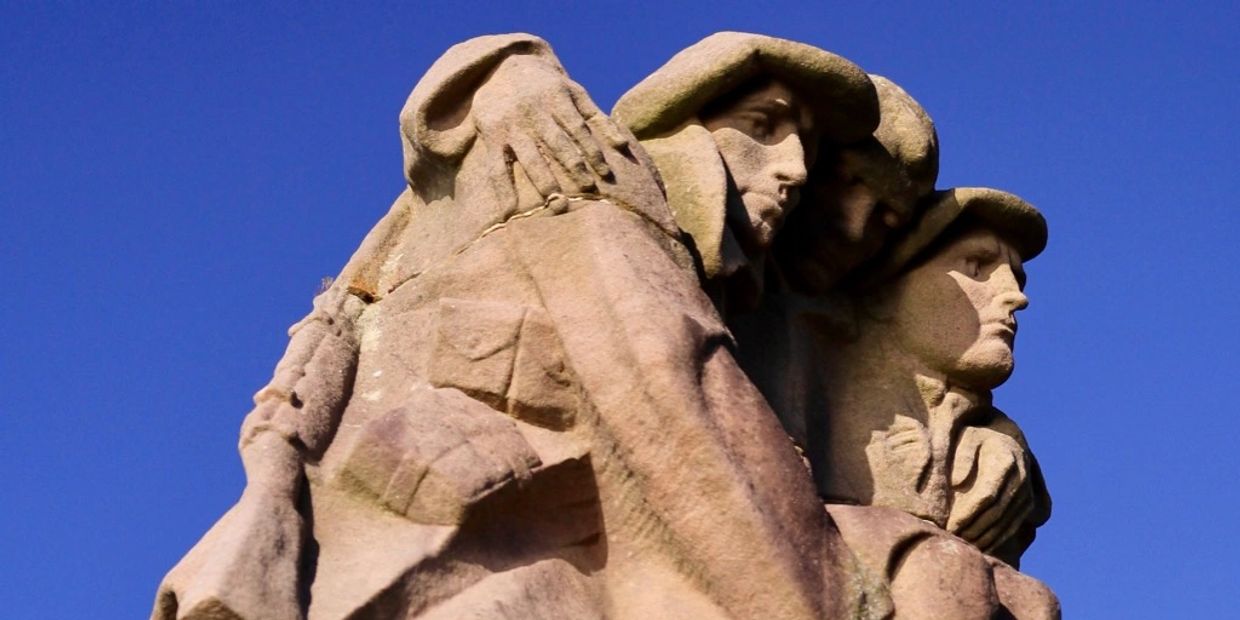 Surely one of the most moving examples of public art anywhere in the world. Oban’s cenotaph was carved out of sandstone in 1923 by the great Scottish sculptor Alexander Carrick and depicts two kilted Highland infantrymen carrying a comrade to safety. It’s some 100 years old but the expressions on the faces of the soldiers are still hauntingly clear - especially the one to the right, who seems completely lost in folorn thought. We love the energy in the carved fingers on the hands of the wounded man - you can feel his determination to cling. to life. This is a much appreciated memorial, locally. Many Obanites regularly walk along the shore from town, down the esplanade to pay respects. As you approach, the whole carved group forms a powerful huddle that seems to impersonate the rolling hills on Mull behind.