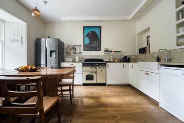 Our kitchen is big and bright with a wall of windows overlooking Home Farm’s courtyard. Although it’s in the oldest part of the house there’s nothing cramped here : it’s very much a room to hang out in and chat around the farmhouse table while cooking or listening to the radio. We have a gas Rangemaster, large fridge-freezer, masses of surfaces and prep space, cupboards and drawers full of all the pans and equipment needed to bake cakes, roast chickens and concoct gigantic stews. Expect to see owls swooping the courtyard at dusk.