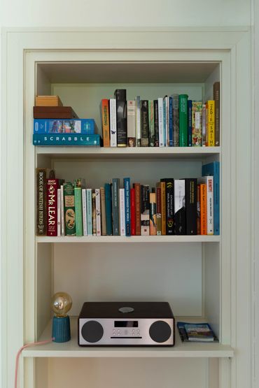 A restful little reception room in the oldest part of the house. The open fire in here puts out a lovely spreading heat very quickly and it’s a perfect place to sit on the sofa or in an armchair with a book and a coffee, or to have a quiet drink. There’s a record player and a wodge of vinyl: a little bit of classical, some blues, funk, jazz. A low window looks out onto Home Farm’s potting shed in the old stables .